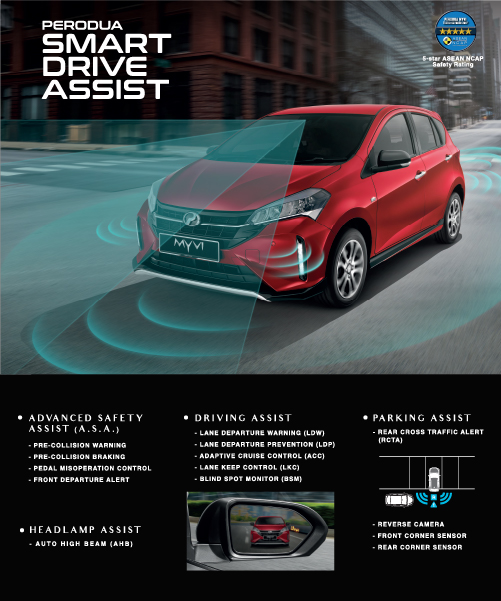 Because your safety matters more than anything, the new Myvi offers advanced technology that provides all-round driver assistance to help you and your loved ones stay safe.